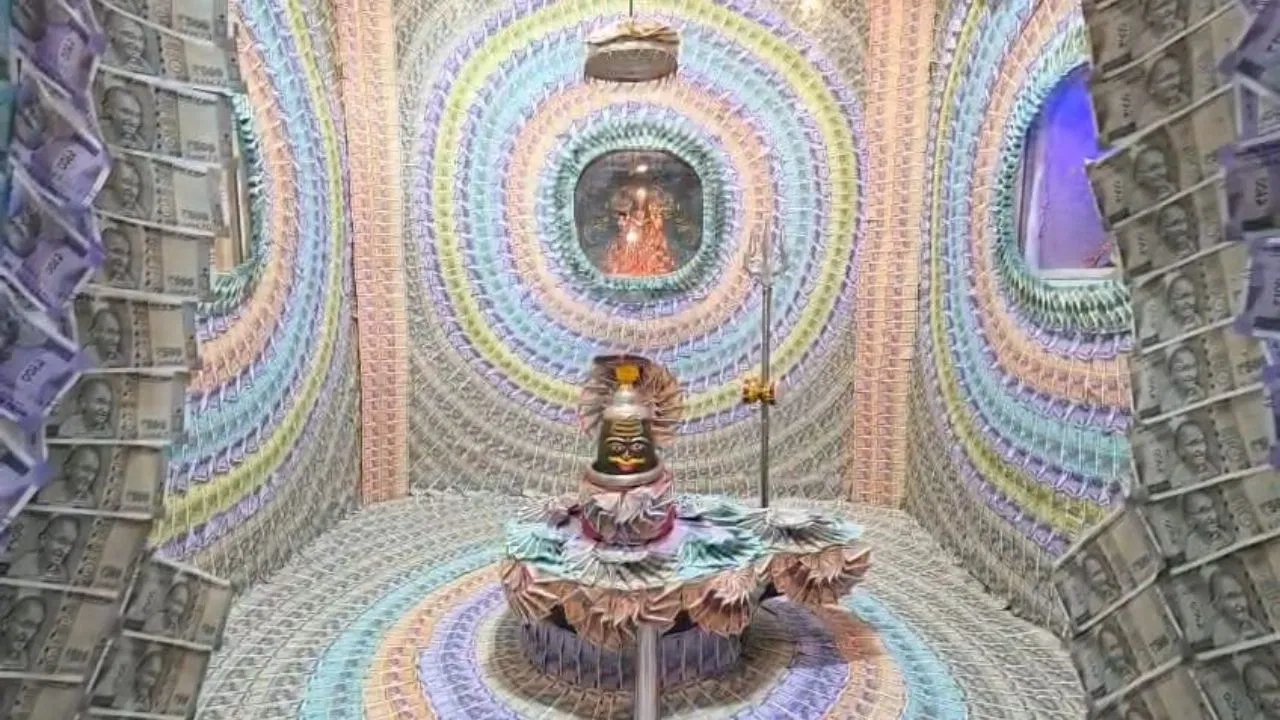 मंदिर में नोटों की सजावट