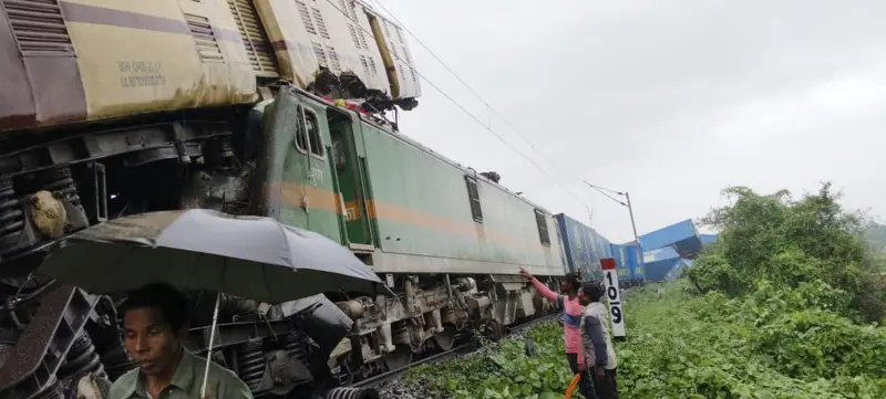दार्जिलिंग के न्यू जलपाईगुड़ी के पास एक मालगाड़ी कंचनजंघा एक्सप्रेस से टकरा गई.