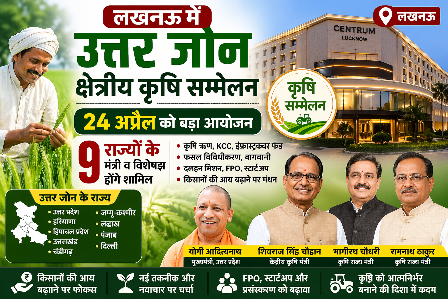 लखनऊ, 23 अप्रैल। उत्तर भारत के कृषि विकास को नई दिशा देने के उद्देश्य से 24 अप्रैल को राजधानी लखनऊ में उत्तर जोन का क्षेत्रीय कृषि सम्मेलन आयोजित किया जाएगा। यह सम्मेलन केंद्रीय कृषि एवं किसान कल्याण मंत्रालय के तत्वावधान में आयोजित होगा, जिसमें 9 राज्यों के कृषि मंत्री, अधिकारी, वैज्ञानिक और प्रगतिशील किसान भाग लेंगे।