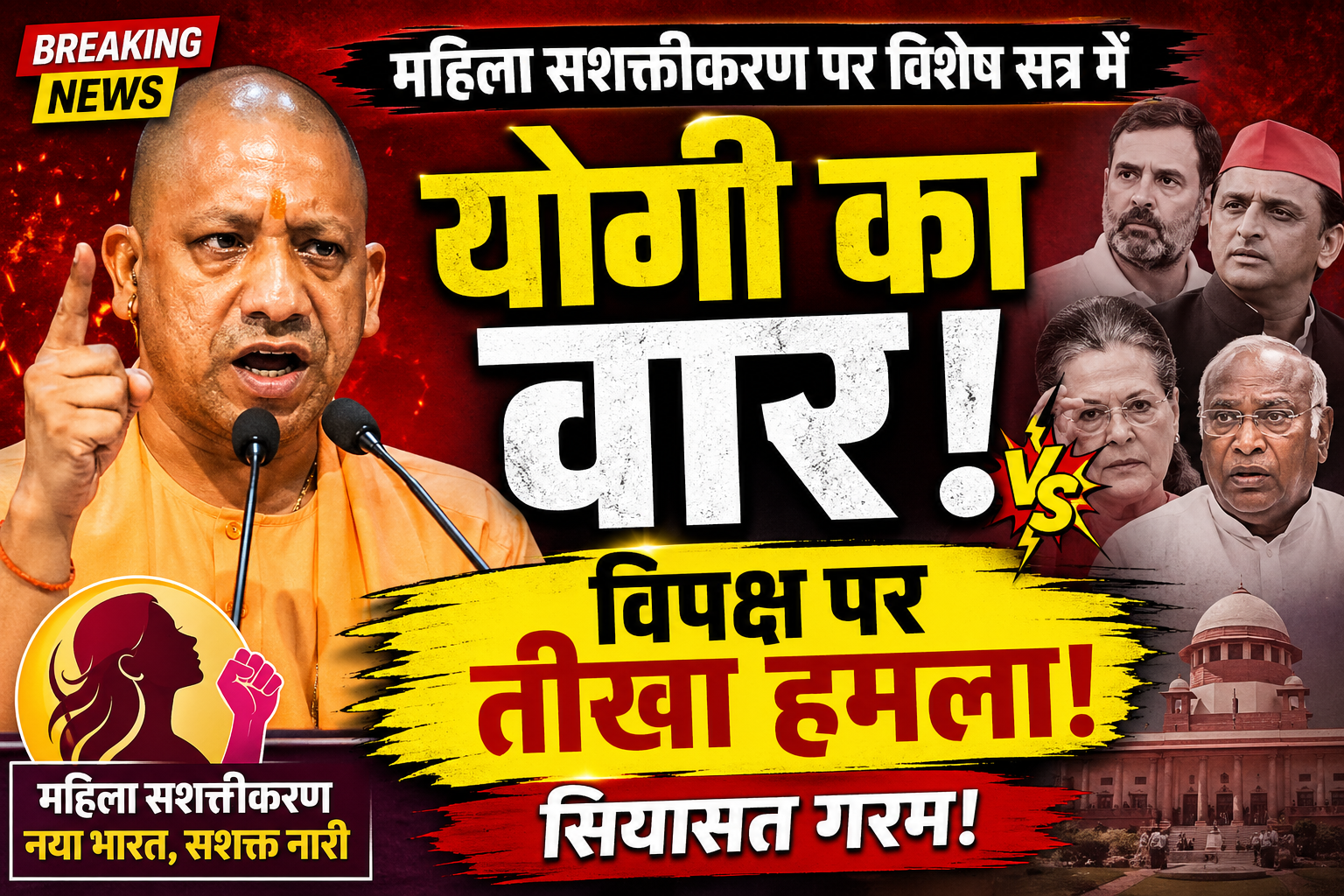 लखनऊ में ‘महिला सशक्तीकरण’ विषय पर आयोजित उत्तर प्रदेश विधानसभा के विशेष सत्र में मुख्यमंत्री Yogi Adityanath ने विपक्षी दलों पर जोरदार हमला बोला। उन्होंने Samajwadi Party, Indian National Congress, Trinamool Congress और Dravida Munnetra Kazhagam के आचरण पर सवाल उठाते हुए कहा कि ये दल महिला विरोधी मानसिकता रखते हैं।